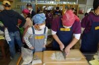 自分たちで蒔いて,収穫したそばを使います。まずはふるいにかけて・・・