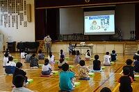 1年生の防犯教室です。防犯関係とおまわりさんが学校に来てくれました。