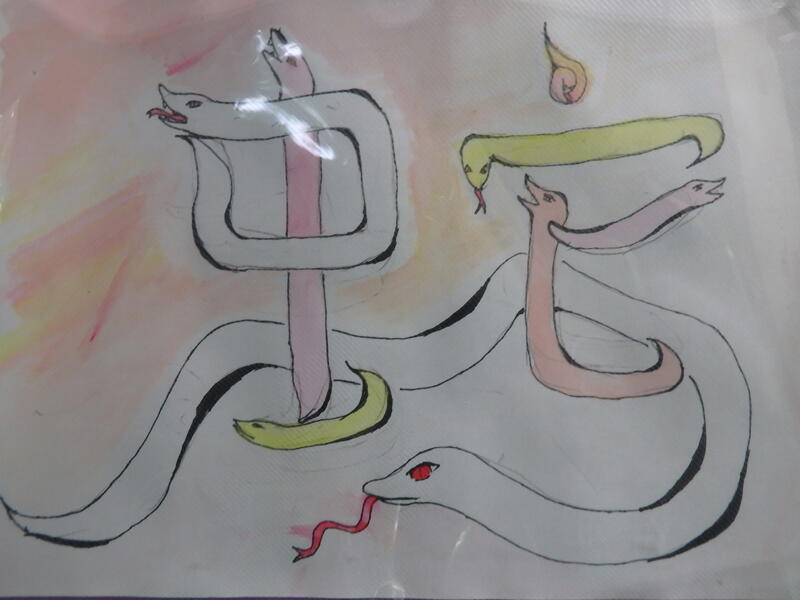 最後は、今日、掲示されていた新しい作品を少し紹介します。単漢字のイメージを発想豊かに表現しているアート作品です。たくさん掲示されていて、個々の作品が、それぞれの作者のイメージで仕上がっています。子ども達が創り出す作品には、それぞれに思いがつまっているので、じっくりと鑑賞する価値があります。