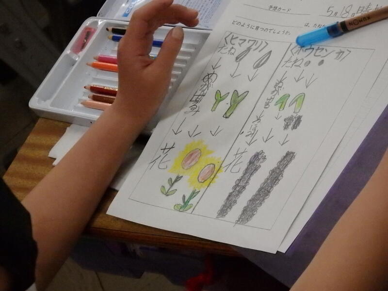 予想したことがどうだったかは、この後、育てていく中ではっきりとしてきますので、観察記録をしっかりまとめていってほしいと思います。物事の変化に興味関心をもつためには、実験や観察をするだけではなく、また、結果だけを知るだけではなく、自分自身で考えを練り、しっかりと予想することは大切です。