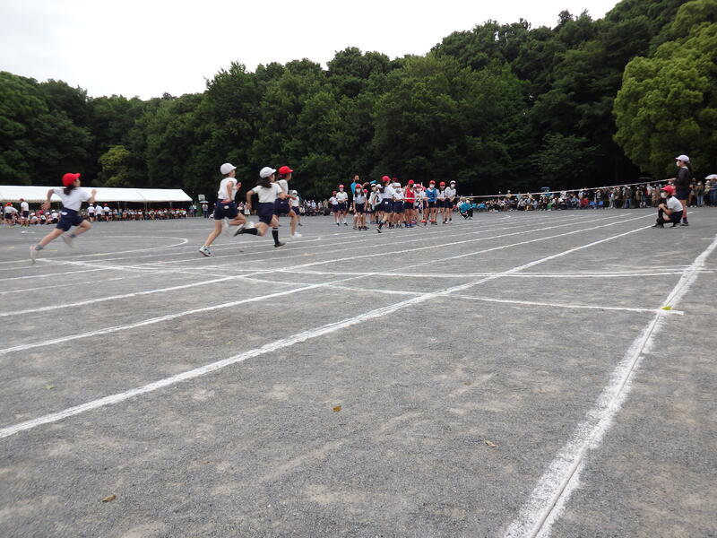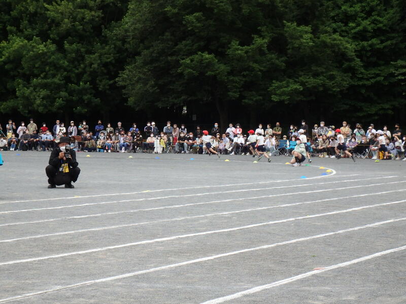5年生 100メートル走。高学年になるとスピードもあり、見ていて、つい応援に熱が入ってしまいます。