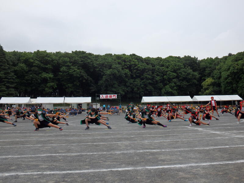 ラストは、色ごとに集合して、最後のポーズ。法被の背面の一文字が誇らしげです。合図で格好良く退場していきます。この調子で、運動会当日は、最高のパフォーマンスを見せてくれると思います。