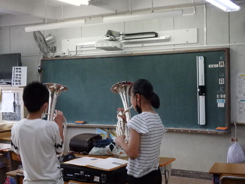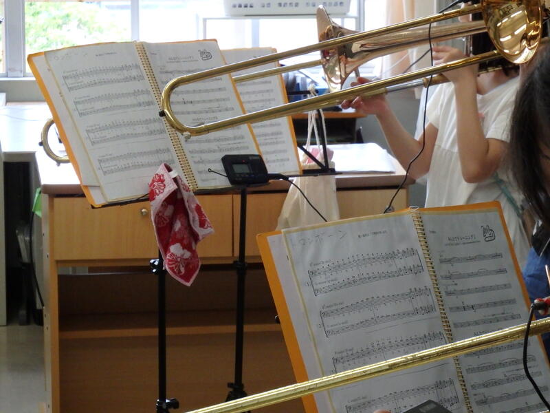 ブラスバンド部も、活動スタート。楽器の手入れや音出し等、協力して取り組んでいました。顧問の先生からは、「楽しい音楽」「気持ちを届ける音楽」を目指していきましょうというメッセージ。熱心に取り組んでいる姿を見ると、みんなでこれから素敵な音楽をたくさん奏でてくれそうです。