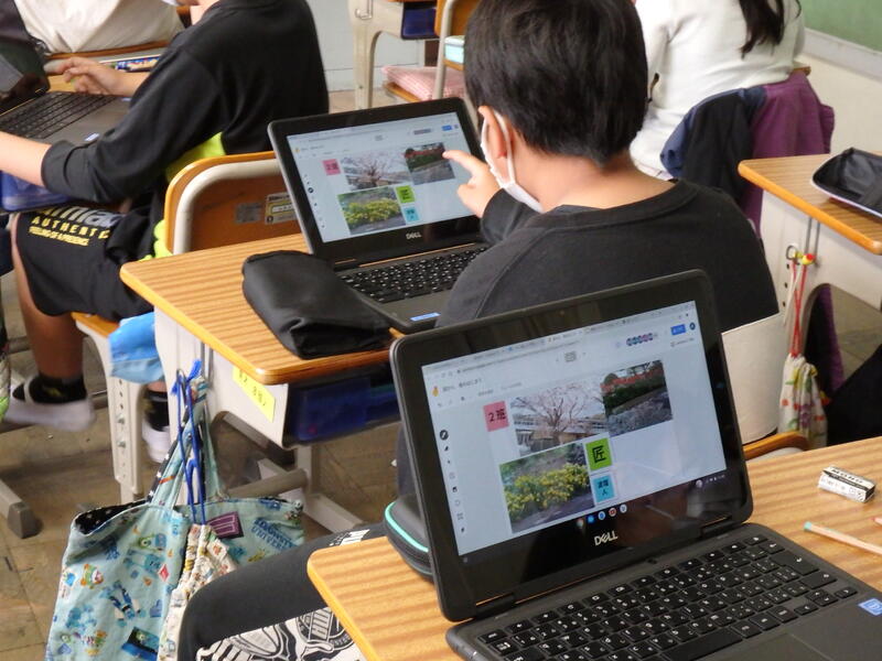 一人一台端末を活用して、グループごとに「春のはじまり図鑑」を作っている学級がありました。画像をそれぞれ選択したものをグループで共有し、まとめていきます。レイアウトを決めたり、友だちとアイデアを出しあったりして、楽しく学習していました。それにしても学習端末を扱い慣れた姿には感心します。