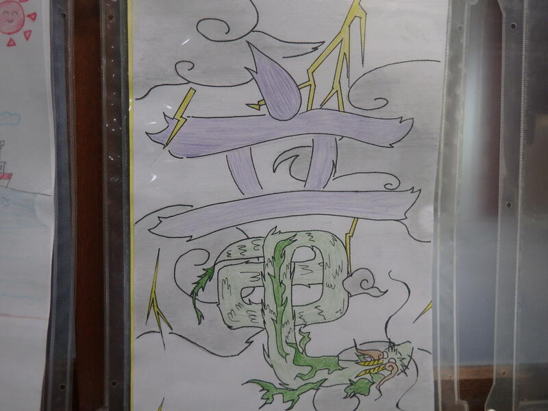 最後は、今日、掲示されていた新しい作品を少し紹介します。単漢字のイメージを発想豊かに表現しているアート作品です。たくさん掲示されていて、個々の作品が、それぞれの作者のイメージで仕上がっています。子ども達が創り出す作品には、それぞれに思いがつまっているので、じっくりと鑑賞する価値があります。