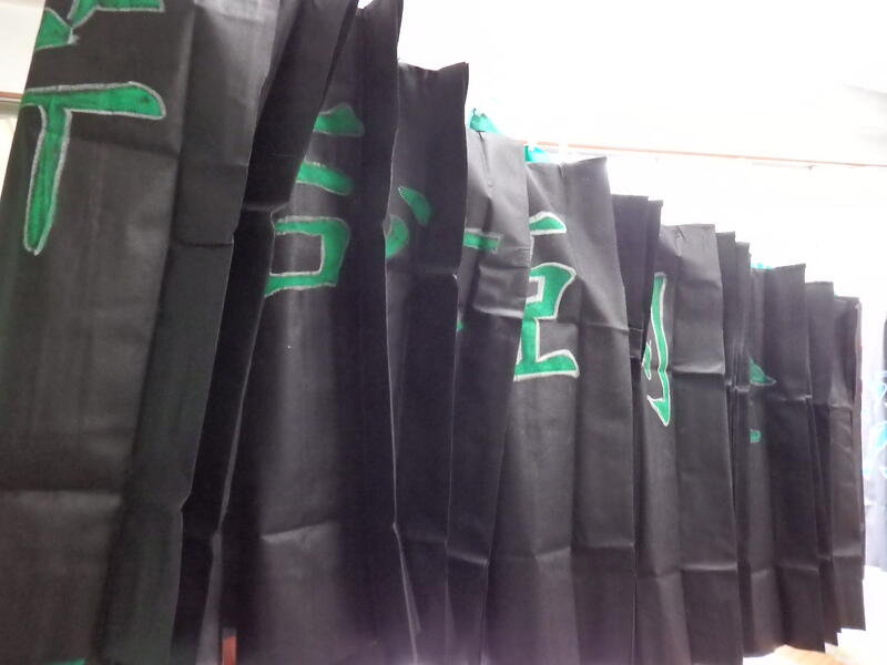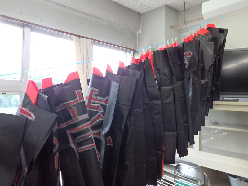 21日の運動会へ向けて、表現(ダンス)の練習以外でも、個人種目や団体種目の練習が始まりました。また、それぞれの種目で使う衣装や道具・用具の準備も整ってきました。素晴らしい運動会にしようという思いが伝わってきます。3年生・4年生は、法被・鳴子・はちまきで、賑やかに演出して踊るようです。とても楽しみです。今日現在はまだ、未着用だそうです。