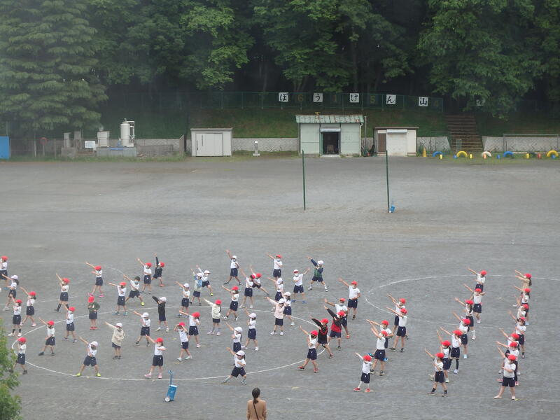 集団行動でもみんな素早く行動していました。動きもすっかり覚えて、元気に踊っています。
