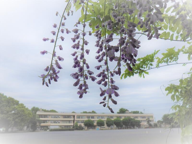 そして、校内を見回っているときに感じることは、子ども達の学習用具や靴、洋服等にけっこう「藤色」を見かけるということです。花言葉も調べてみると素敵ですし、子ども達の心も自然と「藤色」に彩られているのかもしれません。来週、再来週と、また、藤心小の藤棚の様子を紹介します。