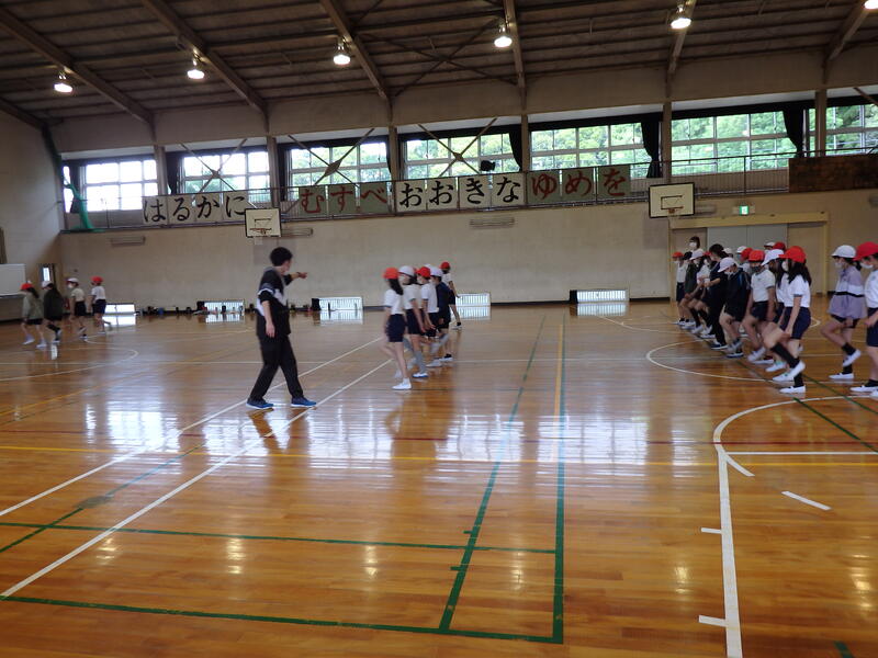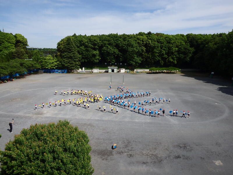 高学年の様子は、屋上から撮影してみました。さすが高学年、きれいに揃って動いていました。