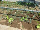 4年生の育ててるゴーヤは,大きくなっても大丈夫なように支柱が立てられました