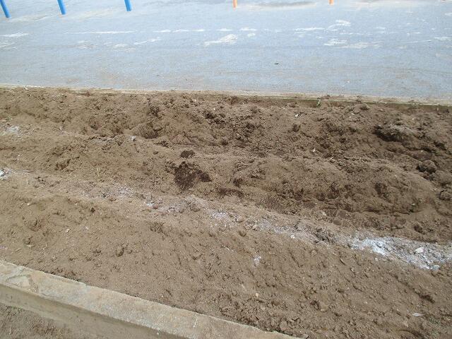 校ていがわの花だんに、ヒマワリのたねをまきました。