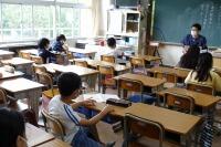 2日間は曇りと雨で気温もあまりあがりませんでした。足下の悪い中来校くださりありがとうございました。1年生は先生の育てているあさがおも見て、自宅のあさがおと比べて帰りました。