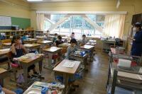 クラスの半分の人数が登校しました。