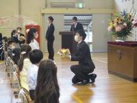 はじめの言葉、校長先生のお話、来賓祝辞(代読)や祝電披露が行われました。担任の先生紹介も今年は控えめに行いました。