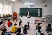 4年生の授業では国語に出てくる落語の世界を、本物の落語家さんを