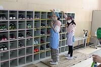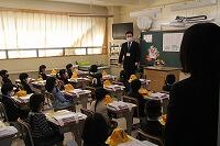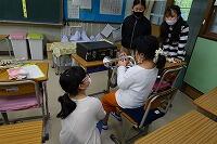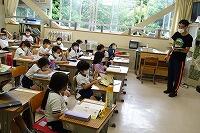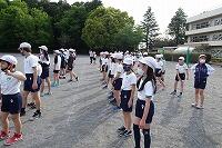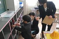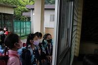 4年生が理科の実験で日陰と日向の温度を測っています。1年生は給食やアレルギーについて栄養教諭の授業を受けました。避難訓練に備えて避難経路の確認もしています。
