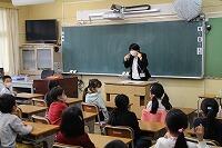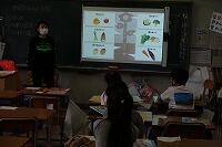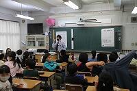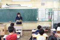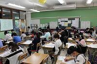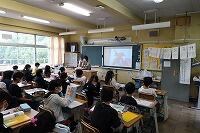 3階の教室では栄養教諭が1階の家庭科室では家庭科の先生が授業をしてくれました。算数の授業では「比例」を勉強しています。