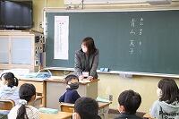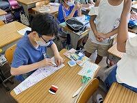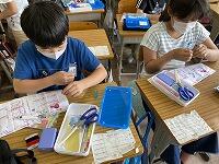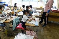 5年生は家庭科の授業で波縫いですが、昼休みに自主的に練習しています。担任の先生も昼休み返上で指導してくれています。