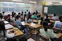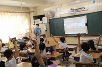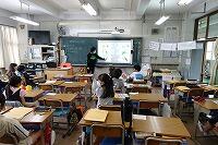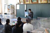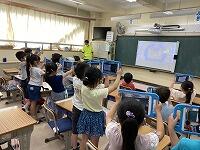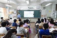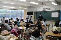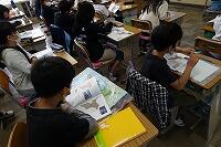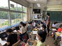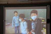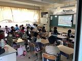 教室で2年生のリポートを視聴する1年生の様子。 あとで実際に探検しました。