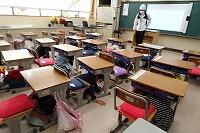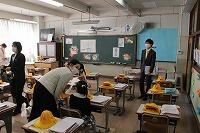 教室では仮の担任の先生が待っています。全員時間内にそろいました。