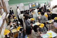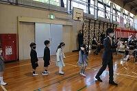 教室ではお家の方と配布物の確認です。最後に担任の先生とじゃんけんポン!また月曜日ねーこれからよろしくお願いします。