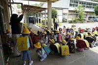 1年生はあさがおの種まきです。教室で説明を受けた後、外で作業です。