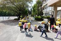 入学後の1年生。最初の10日間は午前日課でコース別集団下校です。