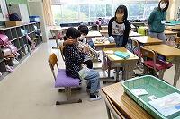1年生と2年生が学校探検をしました。感染予防のため,2年生から1年生への案内はオンラインで行いました。