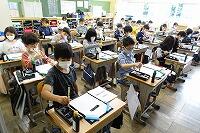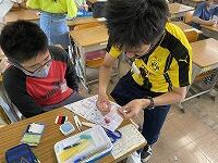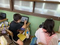 5年生が総合学習の調べ物を教室でクロームブックを使って行っています。4年生は図画工作です。
