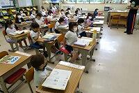 2年生が単元テストをしています。2組は野菜の苗を植えます。教室でよく話を聞いてから
