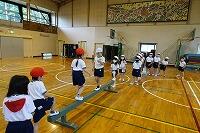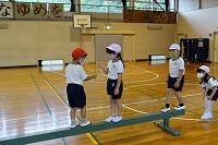 1年生は国語で濁点のつくひらがなの勉強や体育では平均台を使ったゲームをしていました。