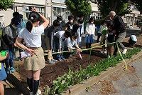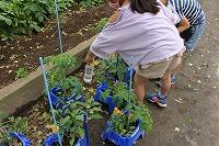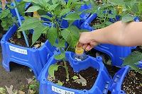 外で、今まで朝顔やチューリップを育てた鉢で、自分で選んだ枝豆や大豆やトマトなどを育てます。