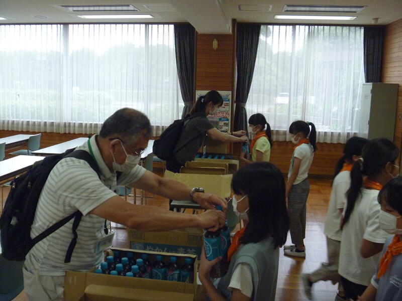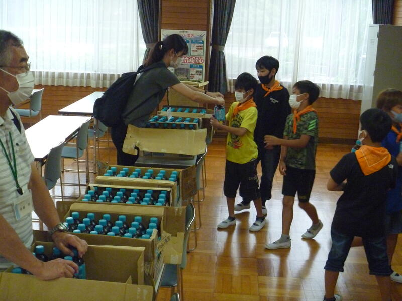 開校式後は、今日の分の麦茶を1人3本ずつ受け取り、1日目の活動がスタートしました。