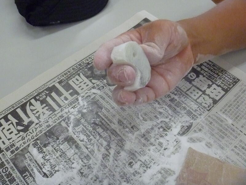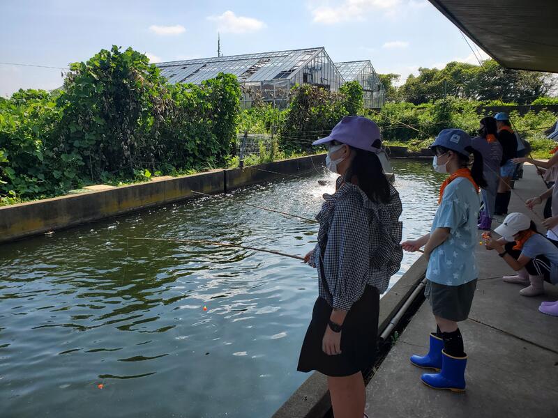 【釣り体験】釣り針にえさをつけて、魚釣りスタート。えさをつけるのも初めてだと難しく感じます。