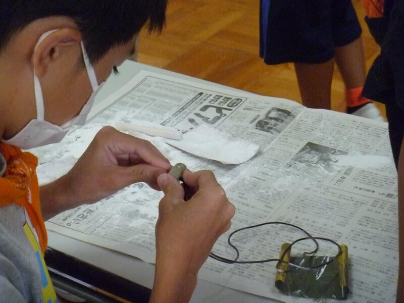 2つ目の活動は、「創作活動」でした。勾玉作りグループと焼杉プレート作りの分かれての活動でした。説明を聞き、体験活動に熱心に取り組んでいました。自分がイメージしたものやデザインしたものが、出来上がっていく過程が楽しい時間です。完成時には、みんな満足そうでした。子ども達の創造力には感心します。