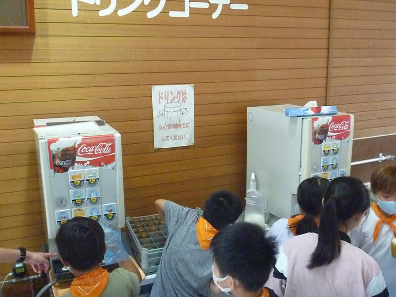 バイキング形式で、自分が食べられる量だけ盛りつけます。フリードリンクコーナーもあります。もちろんおかわりも自由です。室内でマスクをはずす場面なので、食事中は、間隔をあけて座り、黙食です。きれいに片付けもしていました。