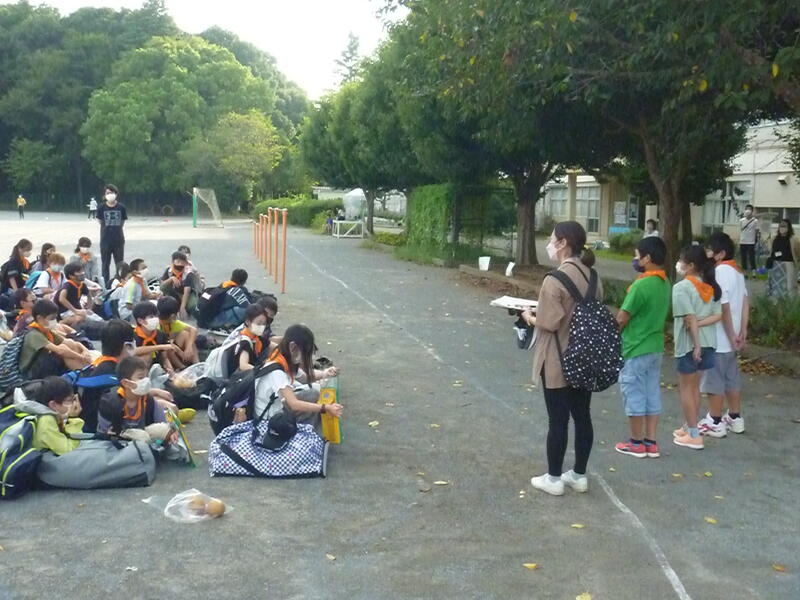 終了後は、館内に戻り、「夜食タイム」で少し休憩。夜食はクリームパンでした。夜食後、入浴タイムで汗や汚れをしっかり洗い流し、さっぱりしました。館内は、エアコンが稼働していて涼しいので、入浴後は、とても快適でした。振り返りや会議、健康観察をして1日目の活動は終わり、消灯の時間となりました。消灯後は、みんなぐっすり、静かに寝ていました。