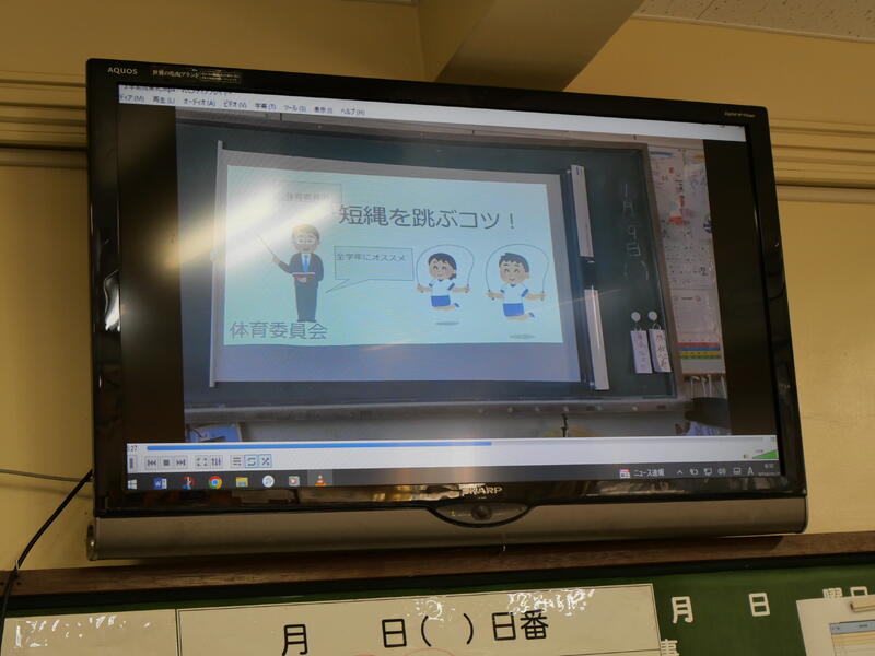 校長先生の話では、「毎日、自分で必ず起きる」ことの確認と3学期のめあても持ち方と過ごし方についてのお話。体育委員会の話では、3学期のみんなで取り組む縄跳び検定に合わせて、なわとびの跳び方のポイントをわかりやすく説明してくれました。