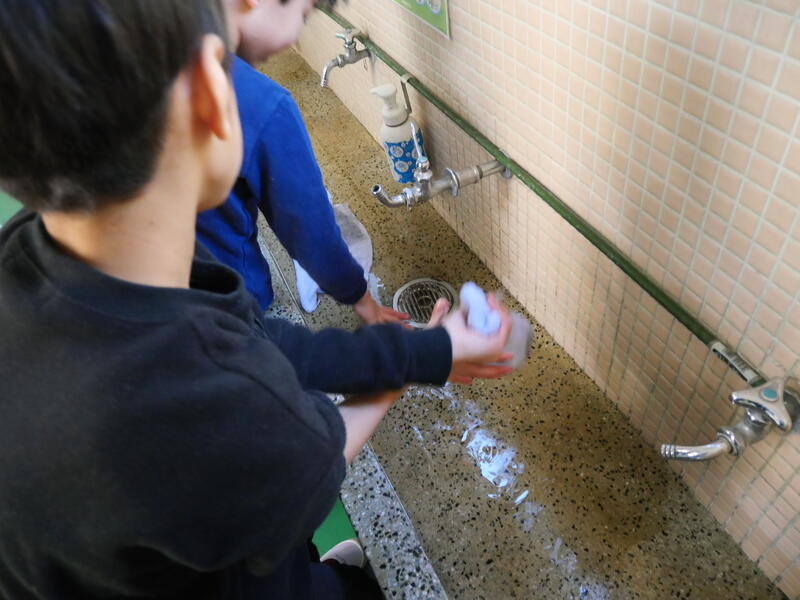 今日の藤心は、風もなく素晴らしい快晴。太陽の光が校舎や校庭を明るく照らしています。空は安定の藤心ブルー。冬の藤心小も素敵な環境です。昨日の日中の寒さの感覚が残っているので、とても暖かく感じます。