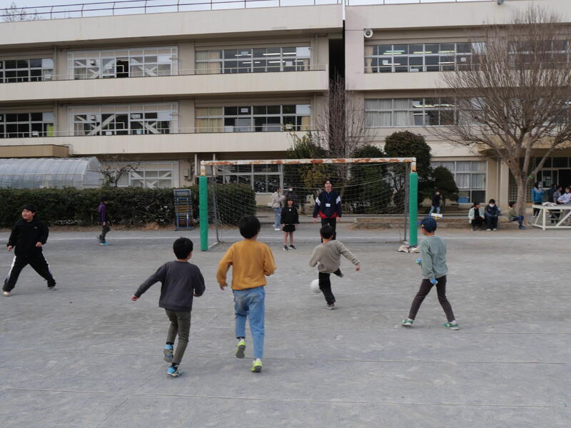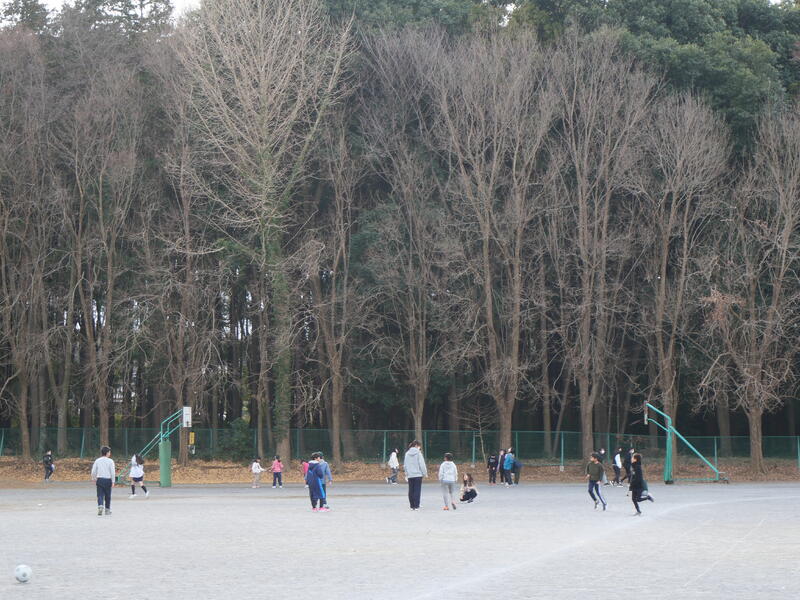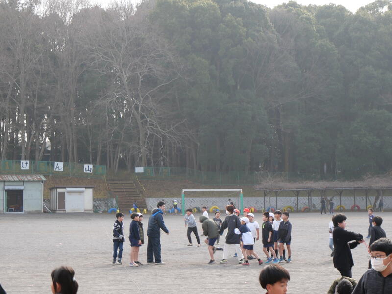今日の藤心は朝から曇天、そして、寒い一日。昼になっても気温は6℃。それでも今日の昼休みは、みんなが大好きな「藤っ子タイム」なので、藤っ子たちは元気に校庭で遊んでいました。先生たちも校庭に出て、一緒に遊んでいました。「昼休み見守りサポート」の地域の方も藤っ子たちの楽しい昼休みを見守ってくださっていました。