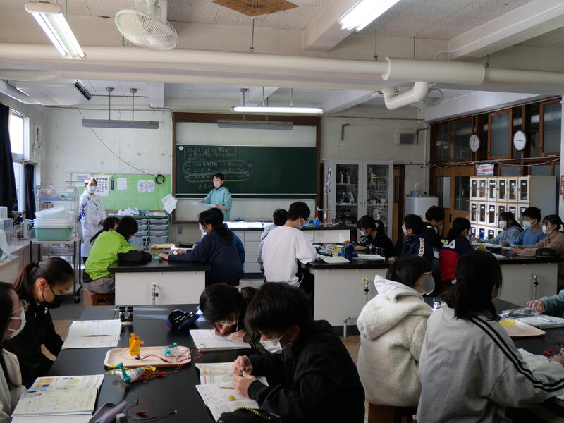最後にもう一度学習問題を確学習の学習のまとめをしていました。あっという間の2時間でした。今日の学習では、いろいろな発見があったようです。次の学習がまた楽しみです。授業の中で、実験器具の扱い方や実験手順の説明をしっかりと聞いていたので、どのグループも協力しながら効率よく活動していました。