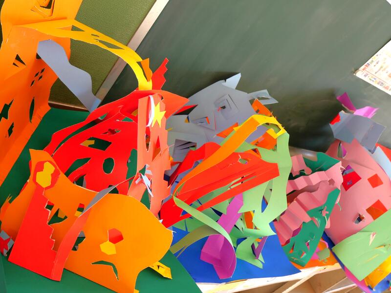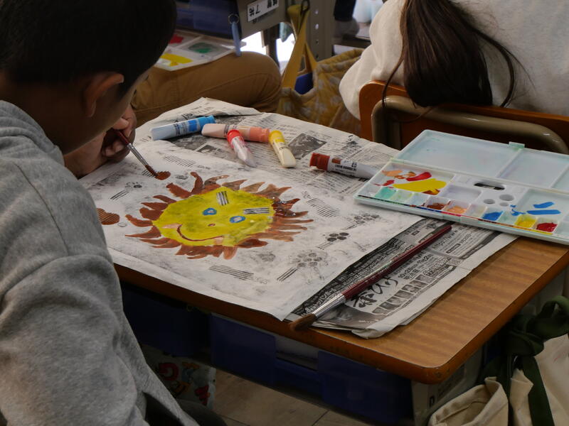 校舎内には子ども達のカラフルな作品が展示・掲示されていたり、今、制作中の作品があったりと明るい雰囲気を演出しています。子ども達の豊かな発想には、いつも感心します。