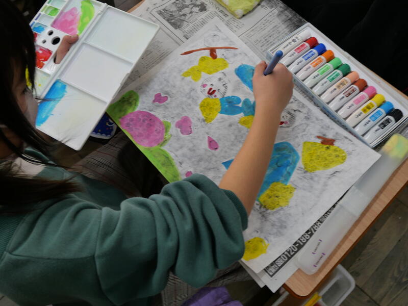 1月19日の藤心 3年生・4年生のカラフルな作品作り