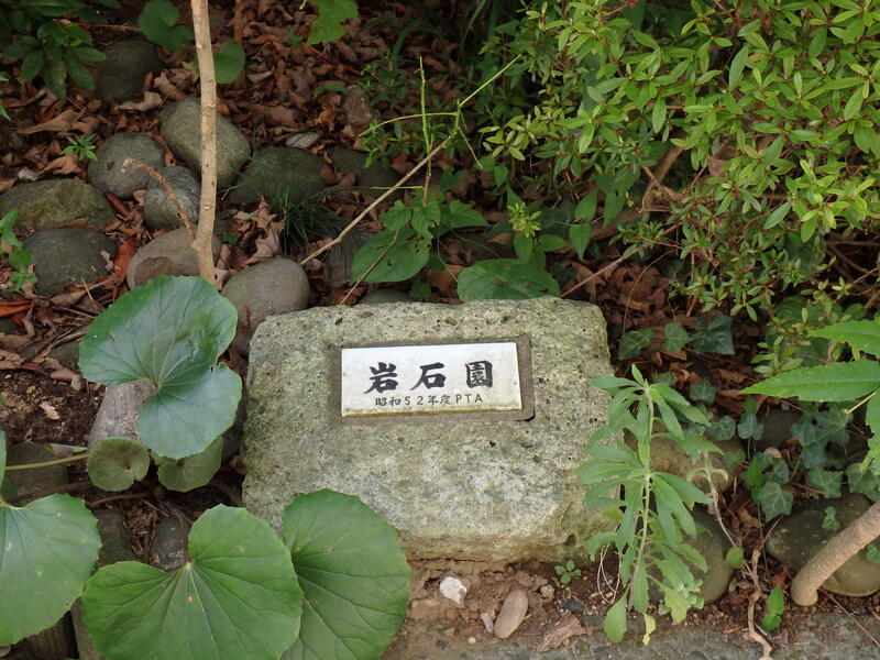 体育館の脇には、立派な岩石園があります。その横の花壇には卒業記念の日時計があります。