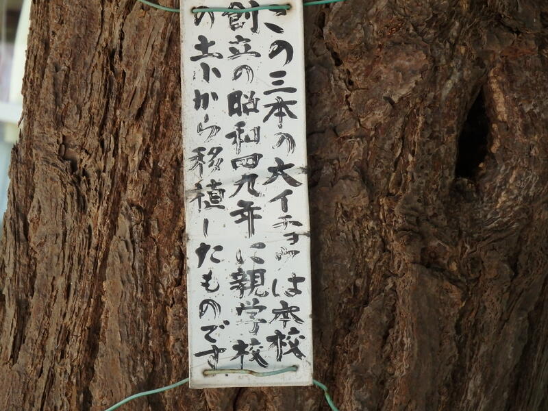 校舎前の通路には、3本のイチョウの木があります。親学校の「土小学校」から移植したものです。