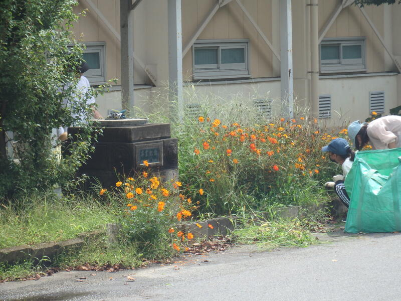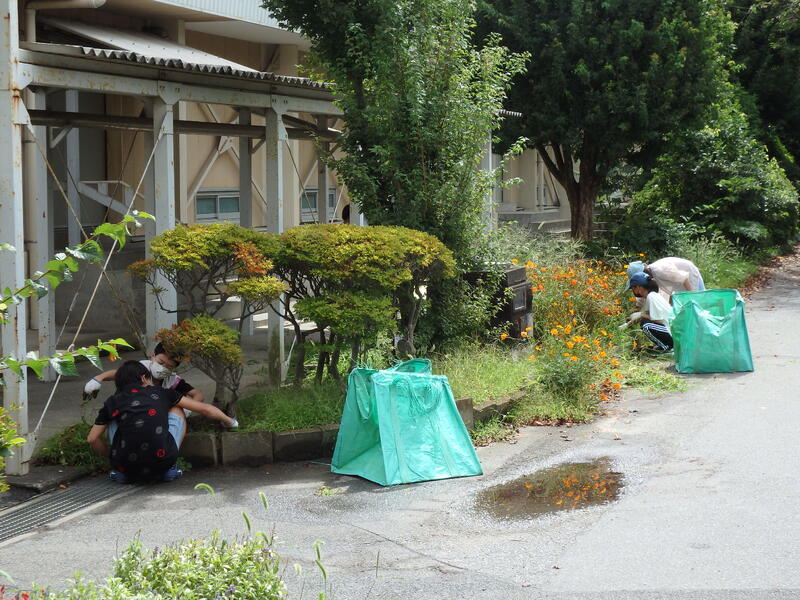 明日9月1日から2学期がスタートします。前日の今日8月31日、花壇の除草や校門から校舎までの通路の落ち葉拾い等の作業をやってくださっている方(保護者・子ども達)がいました。