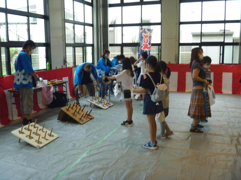 景品輪投げ・景品くじ引き・スーパーボールすくい・和太鼓体験・こども神輿の展示と写真撮影などのコーナーがあって、参加した子ども達は、みんな楽しそうでした。
