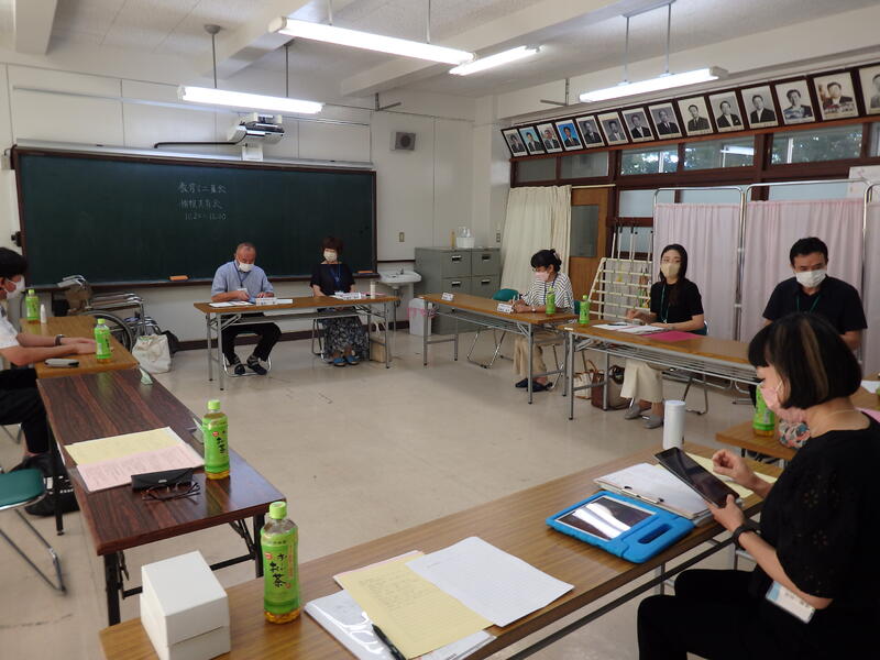 8月19日(金)に第2回学校運営協議会として「教育ミニ集会」を開催しました。学校運営協議会委員5名、PTA役員・委員6名、教職員20名の参加での開催となりました。前半はテーマ別グループワーク(地域連携、防災・安全、家庭教育・情報モラル)を行い、協議を進めました。後半は、各グループの代表者からの情報提供を受け、テーマ別の情報を共有することができ、たいへん有意義な「教育ミニ集会」となりました。