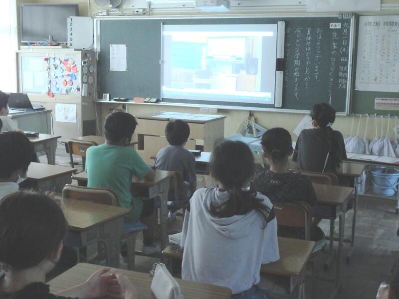 登校時間帯が過ぎ、学級の時間のあと、始業式(動画視聴方式)を行いました。内容は校長先生の話と給食委員会の話、みんな静かに視聴していました。