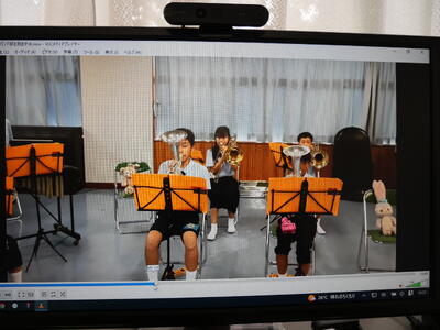 朝の時間帯に「陸上部を励ます会・ブラスバンド部を励ます会」を動画視聴形式で実施しました。